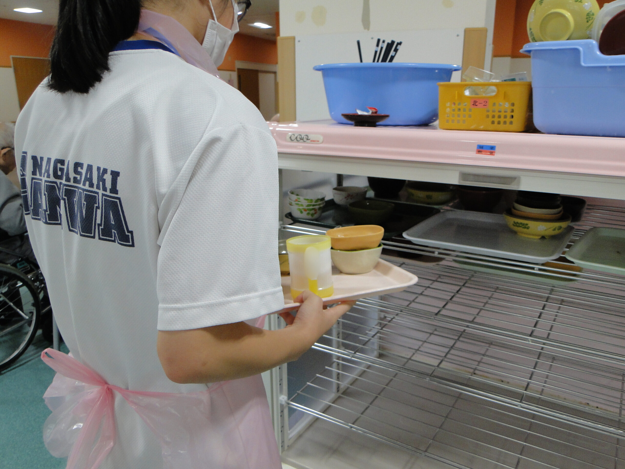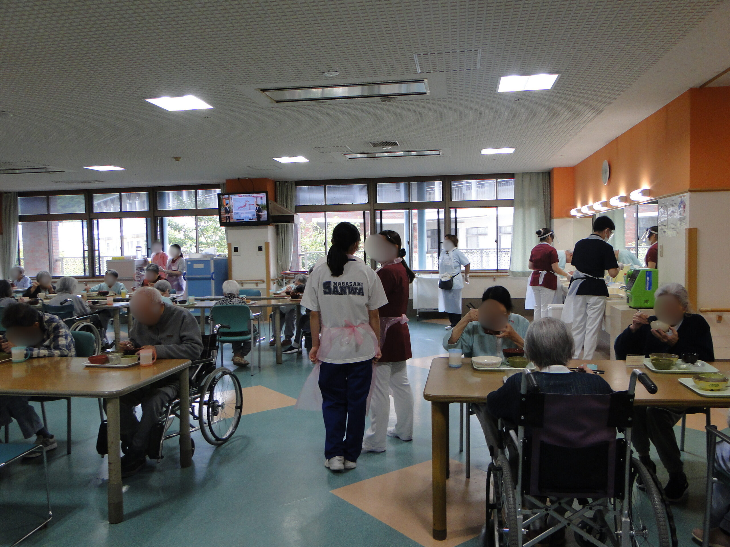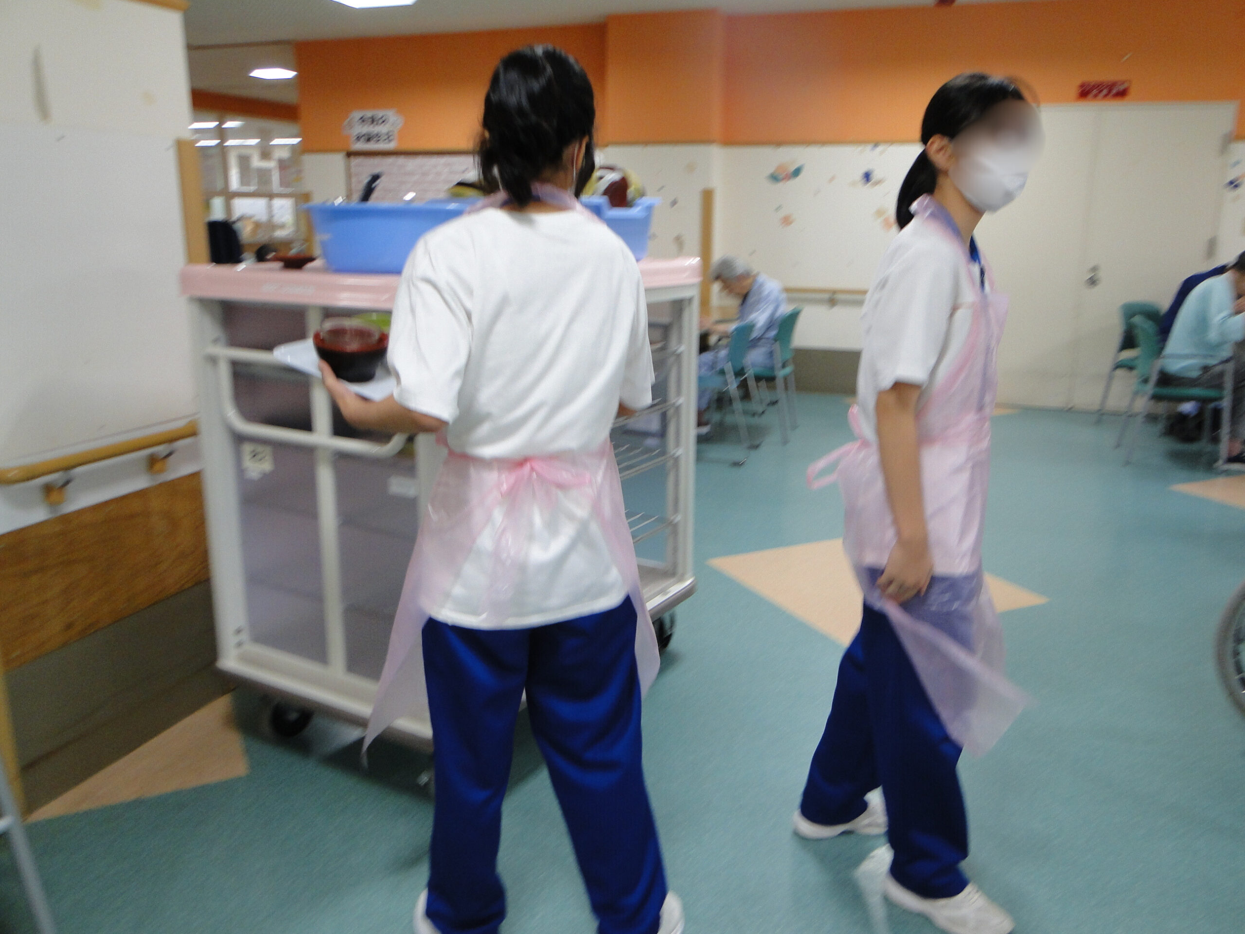 声掛けをしながら食事配膳したり、患者さんの食事の様子の見学や