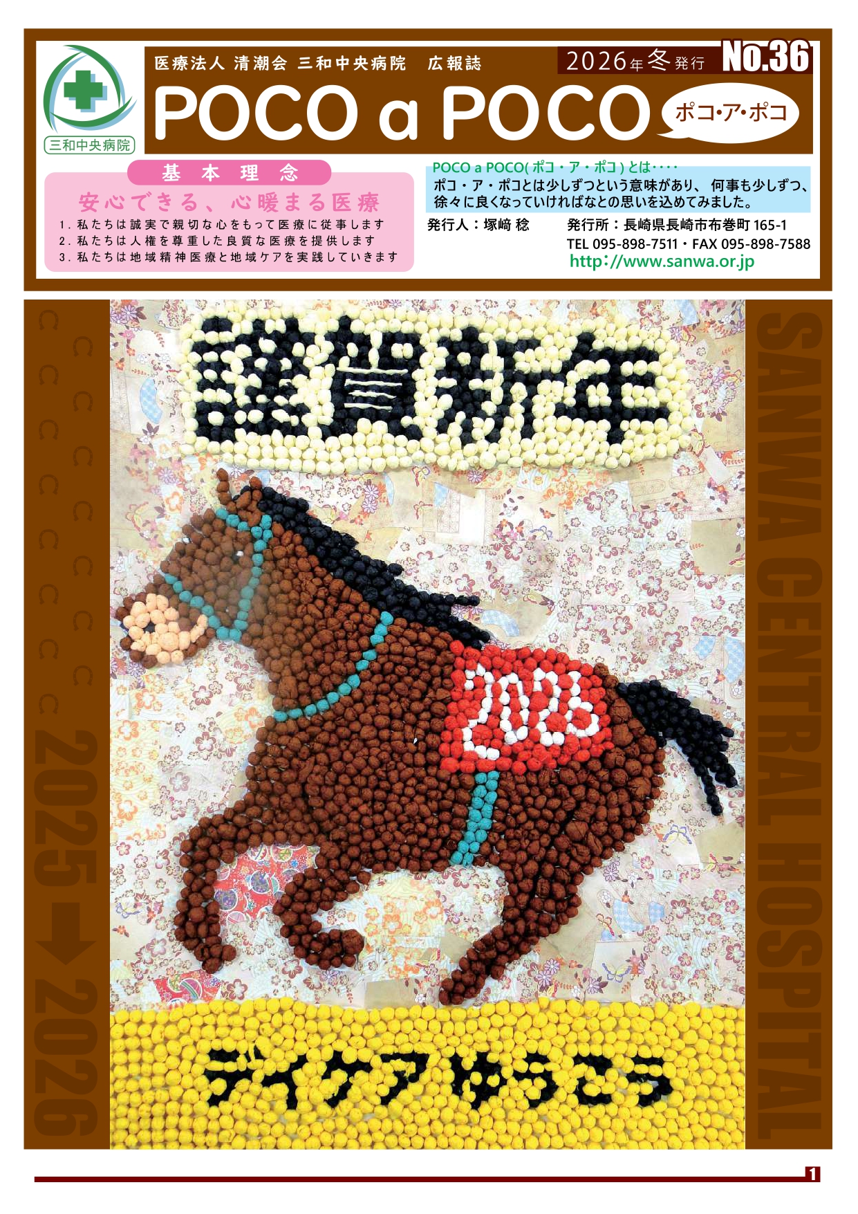 お知らせ 広報誌POCO a POCO(ポコ・ア・ポコ)36号を発行しました 投稿日:2026年1月15日(木)2026年1月15日(木) 広報誌POCO a POCO36号を発行しました。今号の内容は以下の通りです。 ・新年の挨拶 ・第10回国際内観療法学会に参加してきました ・第70回九州精神医療学会に参加しました ・職員の趣味・特技にPINT:ペット紹介 ・永年勤続表彰 バックナンバーはこちらからご覧いただけます。